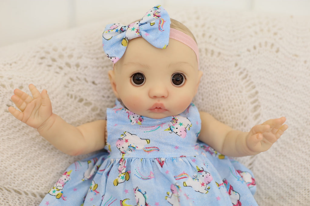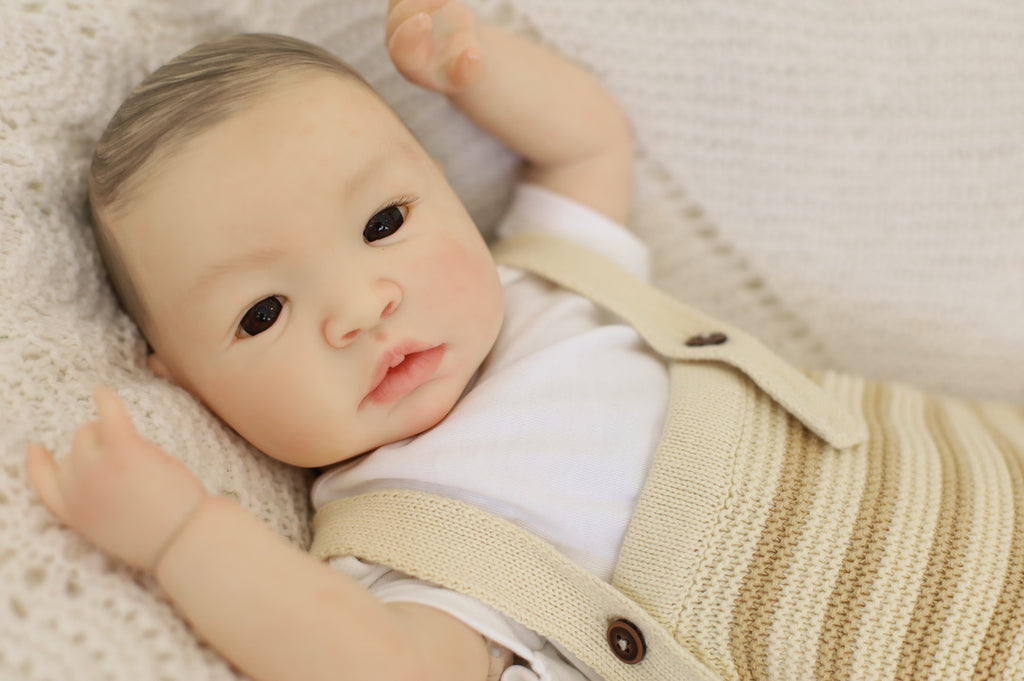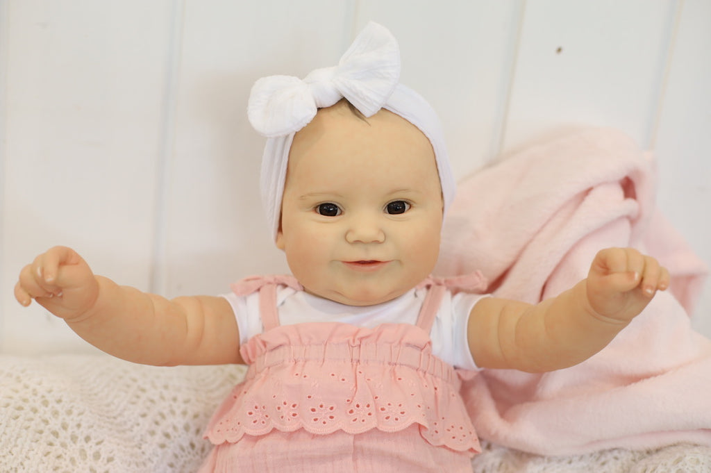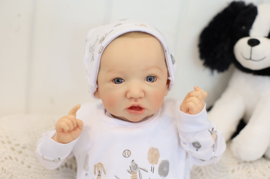 We create our Playborn dolls from genuine reborn doll kits, and paint each baby with unique care and attention. Perfect to hold and play with, playborn dolls can bring joy, comfort, and endless fun to people of all ages. Our newborn dolls are weighted with fine glass beads, while our larger toddler sized dolls are weighted with poly pellets. Included with each hand-assembled doll are a baby blanket, bottle, nappies, birth certificate, and reborn certificate of authenticity (when provided by artist).