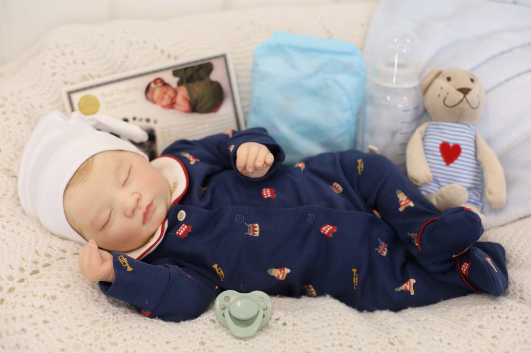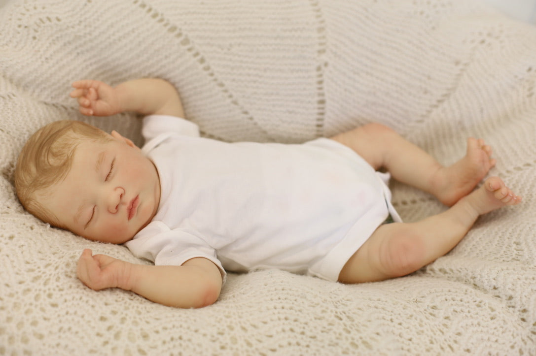 He has been hand painted at Aliyah's Playborn World by our team of talented reborn artists. Many, many layers of paint have brought this precious baby to life, making him look and feel just like a real baby.