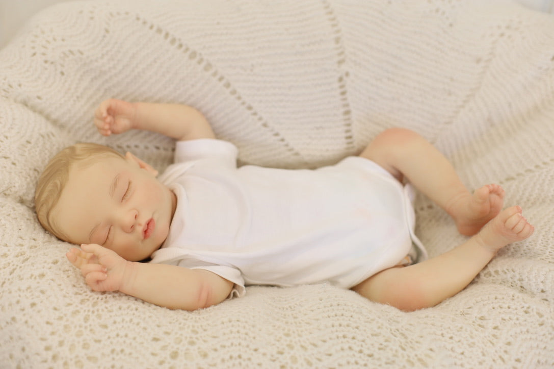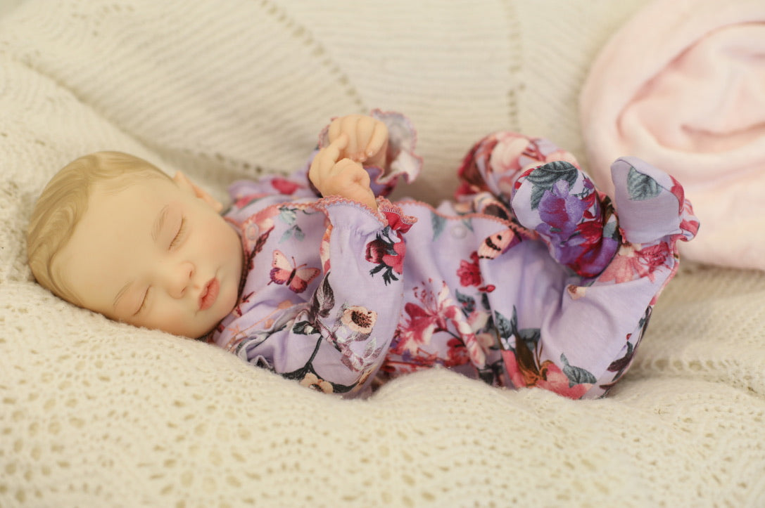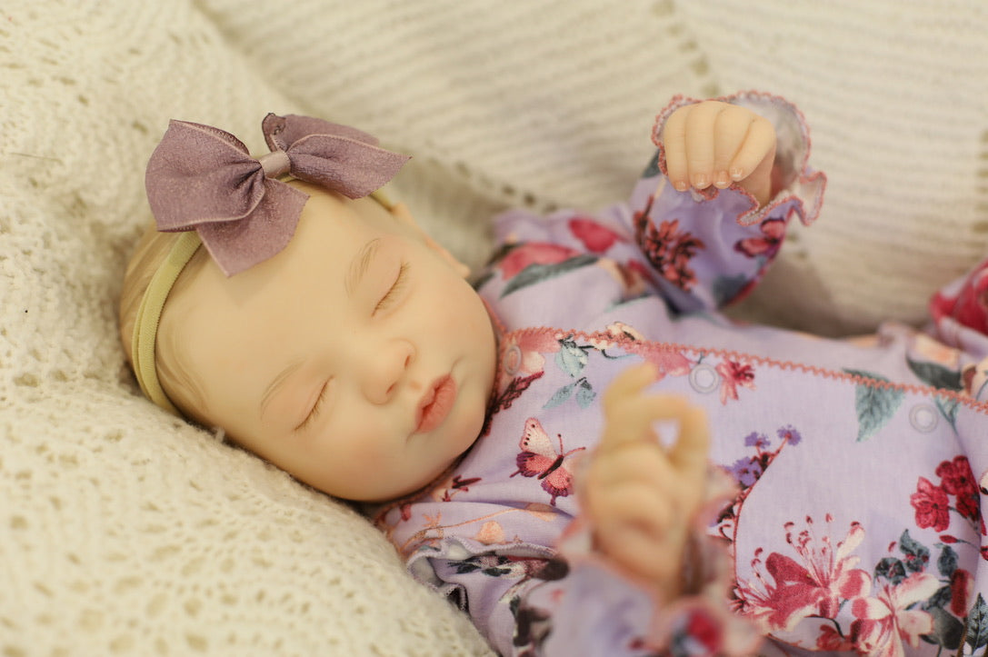 She has been hand painted at Aliyah's Playborn World by our team of talented reborn artists. Many, many layers of paint have brought this precious baby to life, making her look and feel just like a real baby.