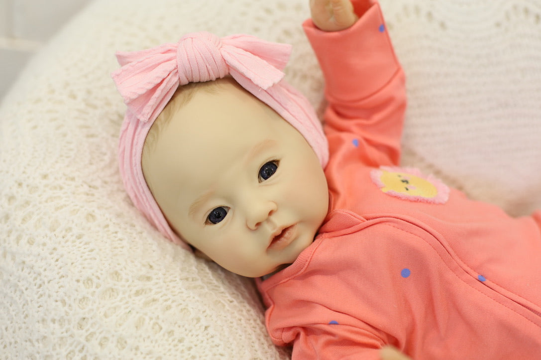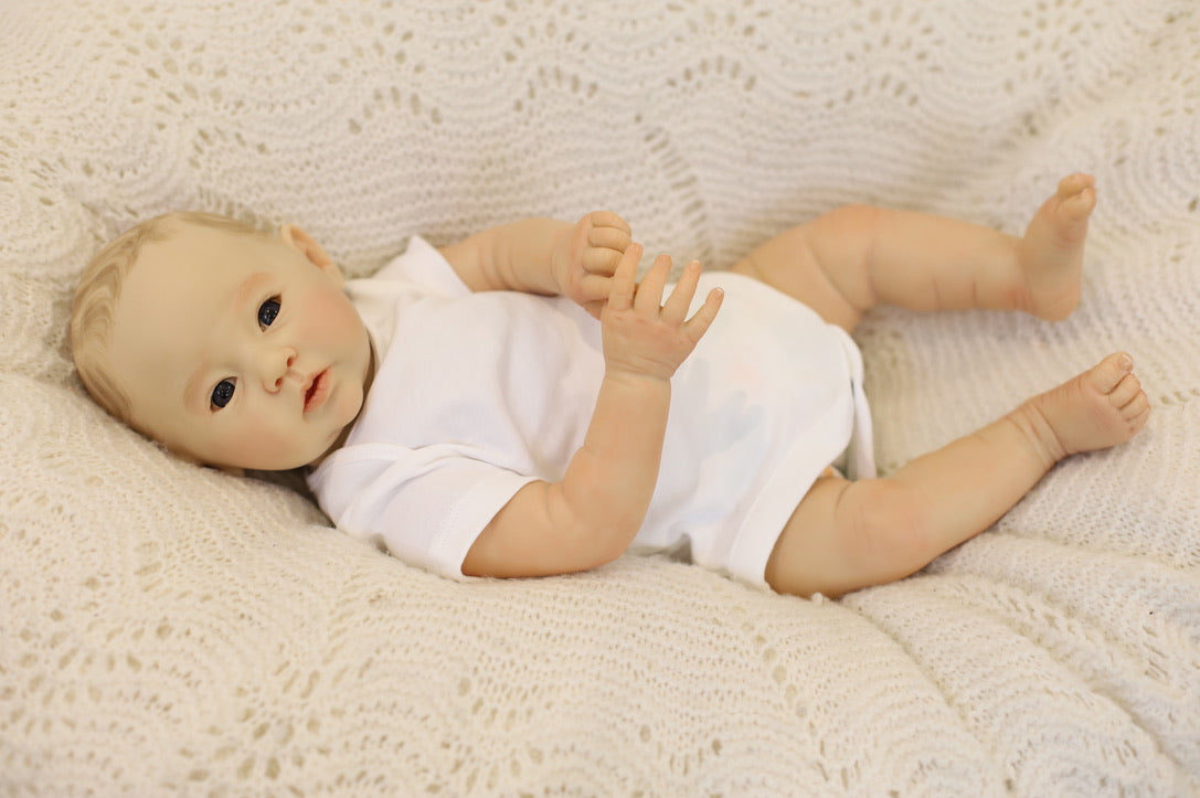 She has been hand painted at Aliyah's Playborn World by our team of talented reborn artists. Many, many layers of paint have brought this precious baby to life, making her look and feel just like a real baby.