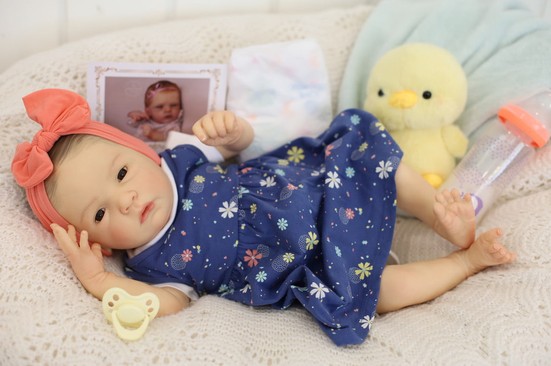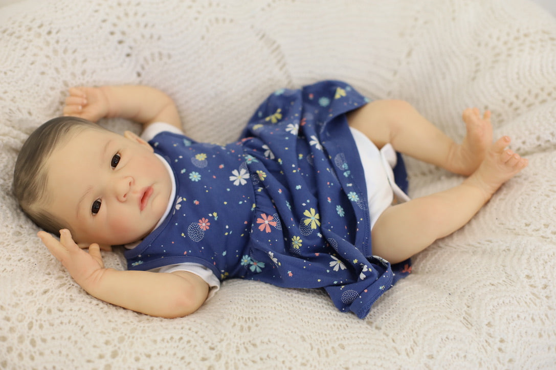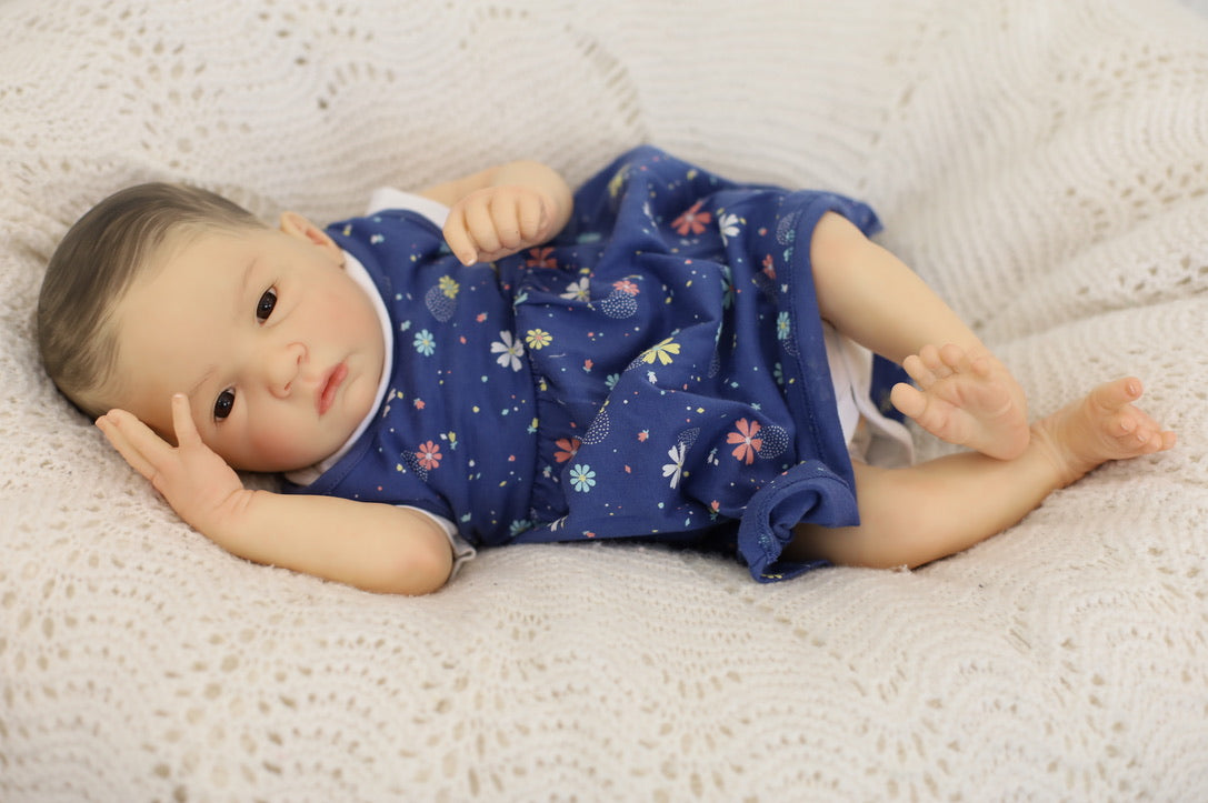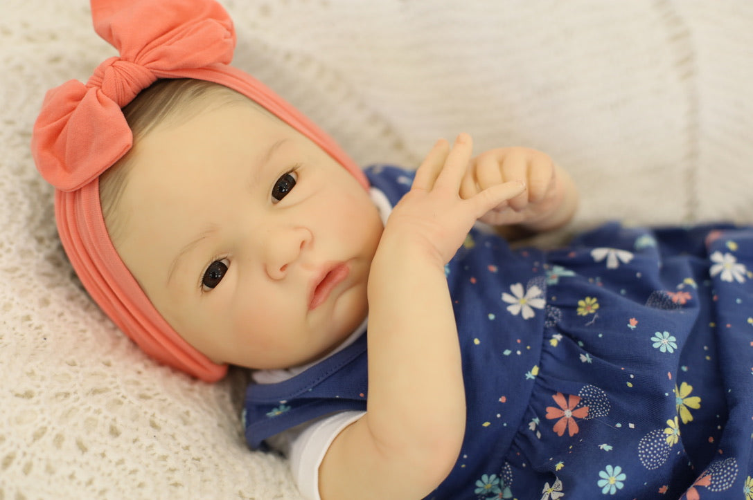 She has been hand painted at Aliyah's Playborn World by our team of talented reborn artists. Many, many layers of paint have brought this precious baby to life, making her look and feel just like a real baby.