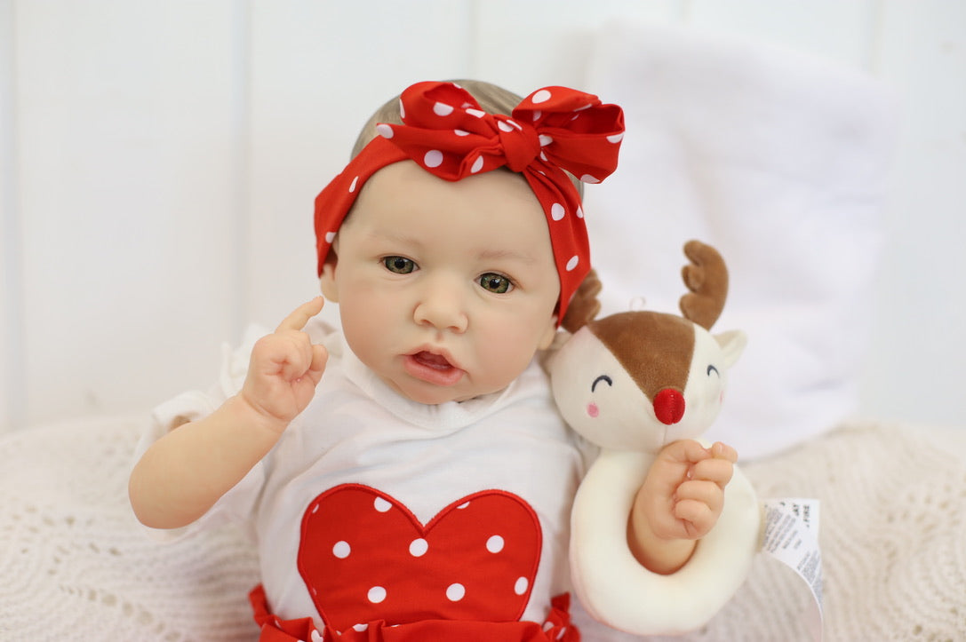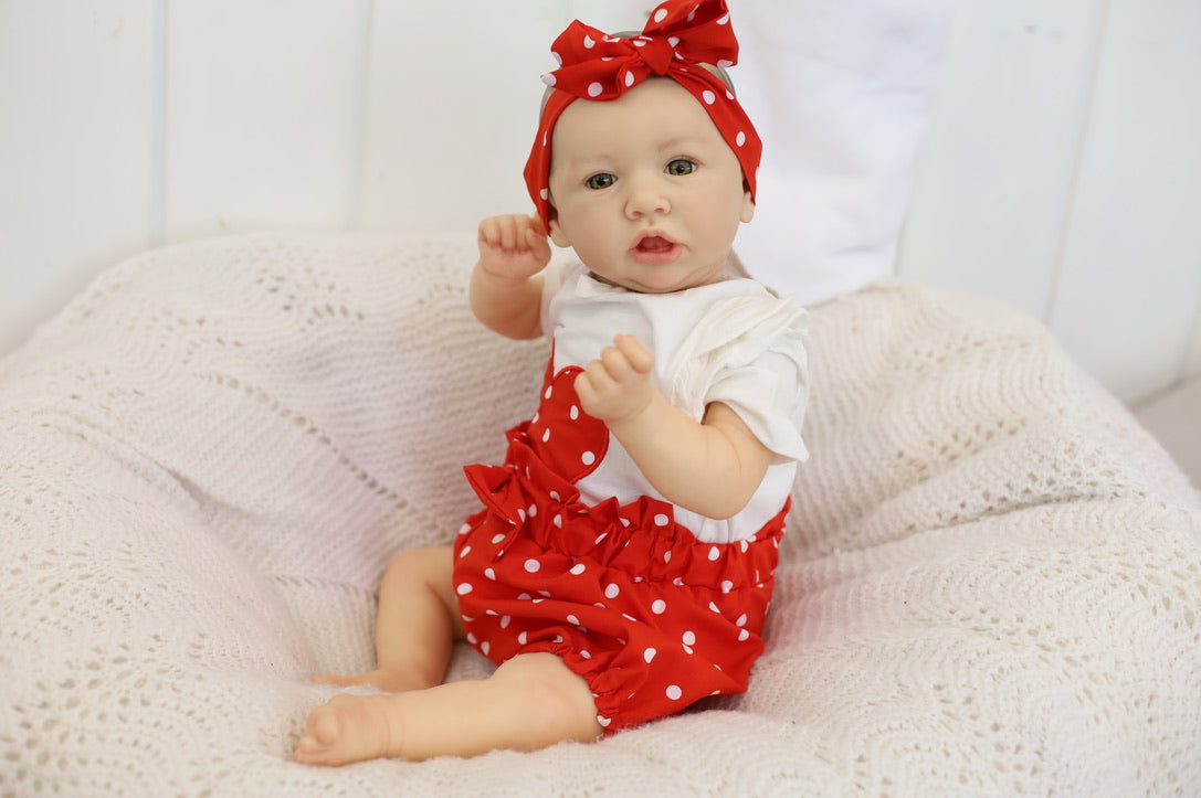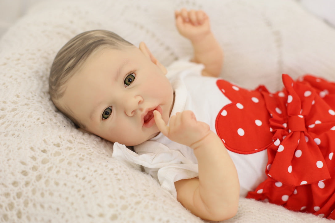 She has been hand painted at Aliyah's Playborn World by our team of talented reborn artists. Many, many layers of paint have brought this precious baby to life, making her look and feel just like a real baby.