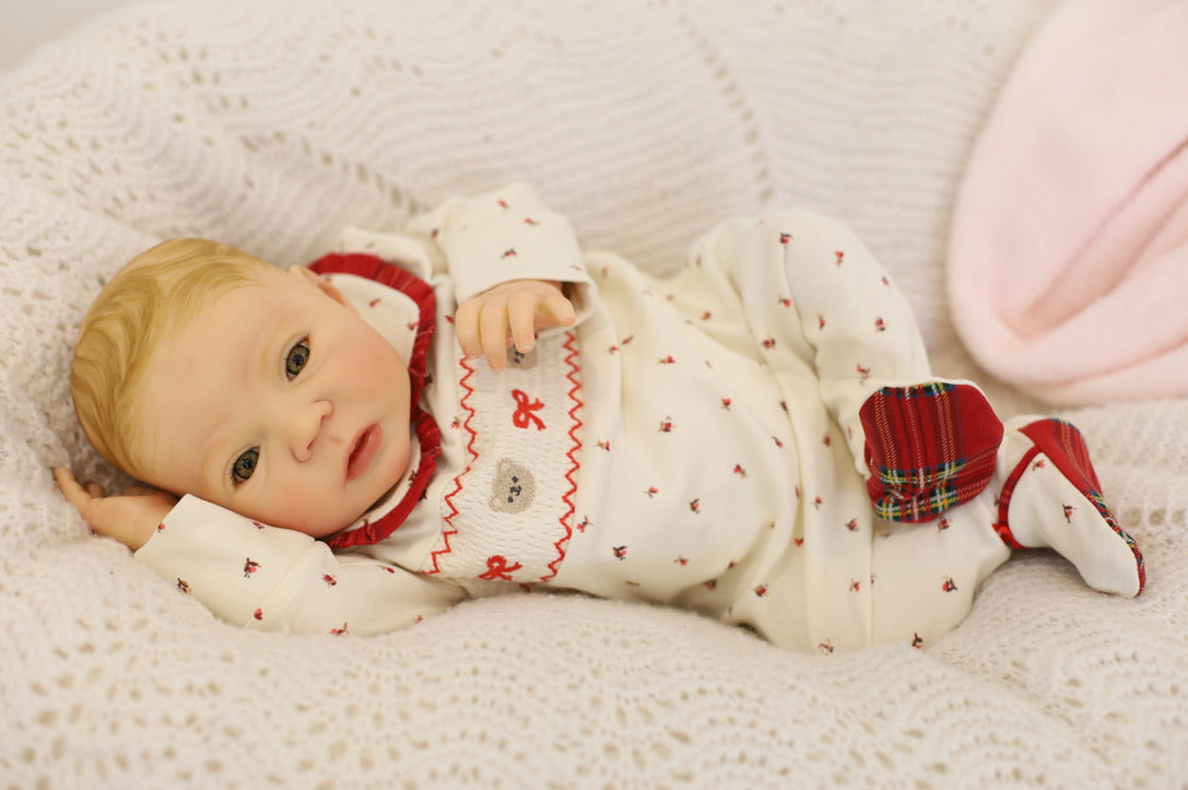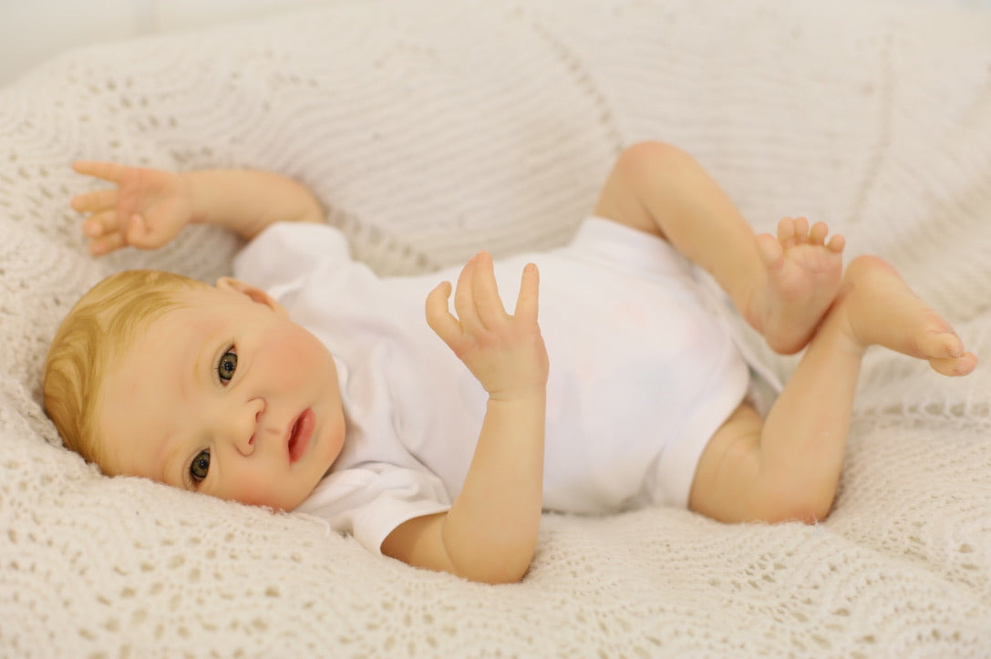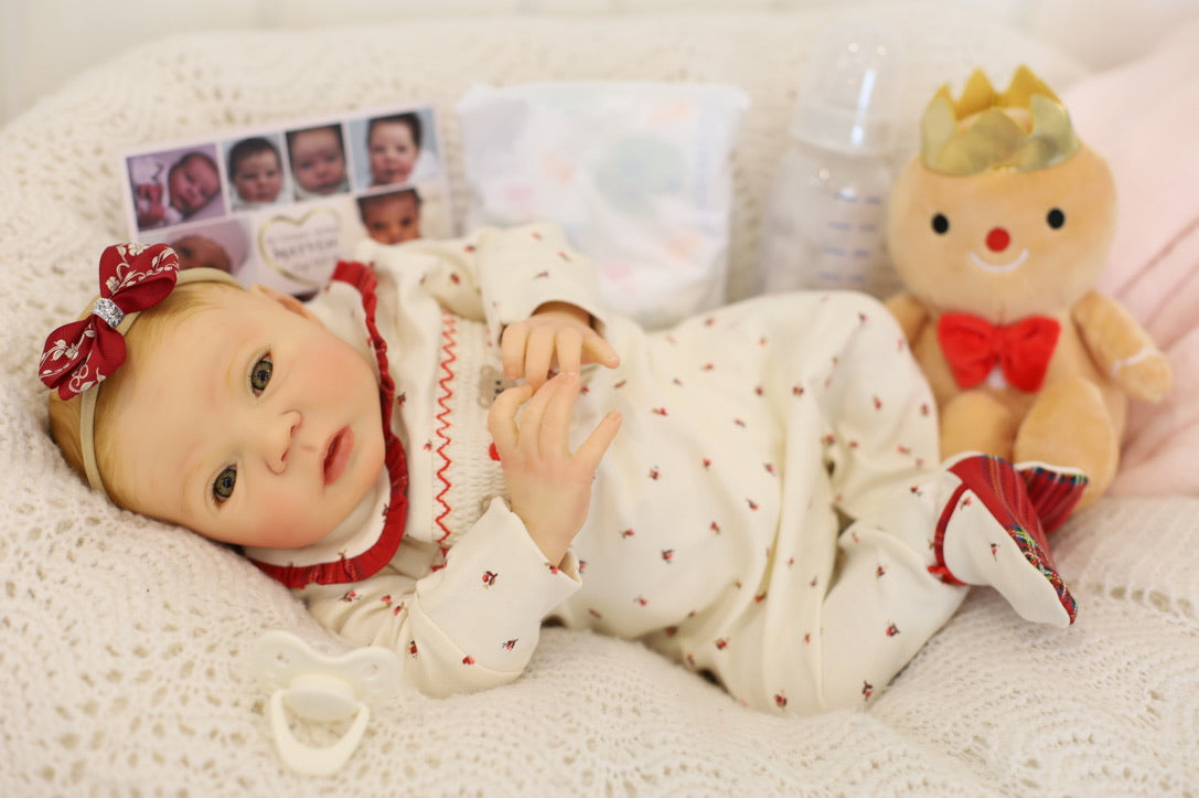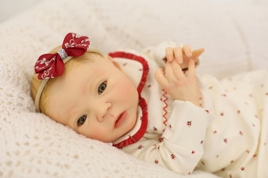 She has been hand painted at Aliyah's Playborn World by our team of talented reborn artists. Many, many layers of paint have brought this precious baby to life, making her look and feel just like a real baby.