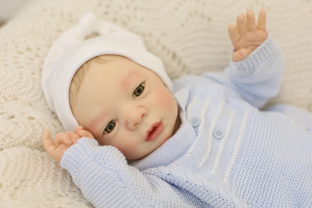We create our Playborn dolls from genuine reborn doll kits, and paint each baby with unique care and attention. Perfect to hold and play with, playborn dolls can bring joy, comfort, and endless fun to people of all ages. Our newborn dolls are weighted with fine glass beads, while our larger toddler sized dolls are weighted with poly pellets. Included with each hand-assembled doll are a baby blanket, bottle, nappies, birth certificate, and reborn certificate of authenticity (when provided by artist).