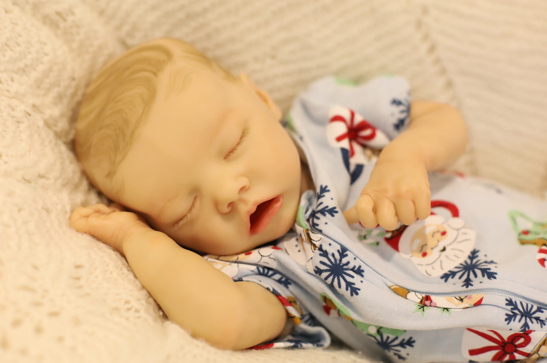 He has been hand painted at Aliyah's Playborn World by our team of talented reborn artists. Many, many layers of paint have brought this precious baby to life, making him look and feel just like a real baby.