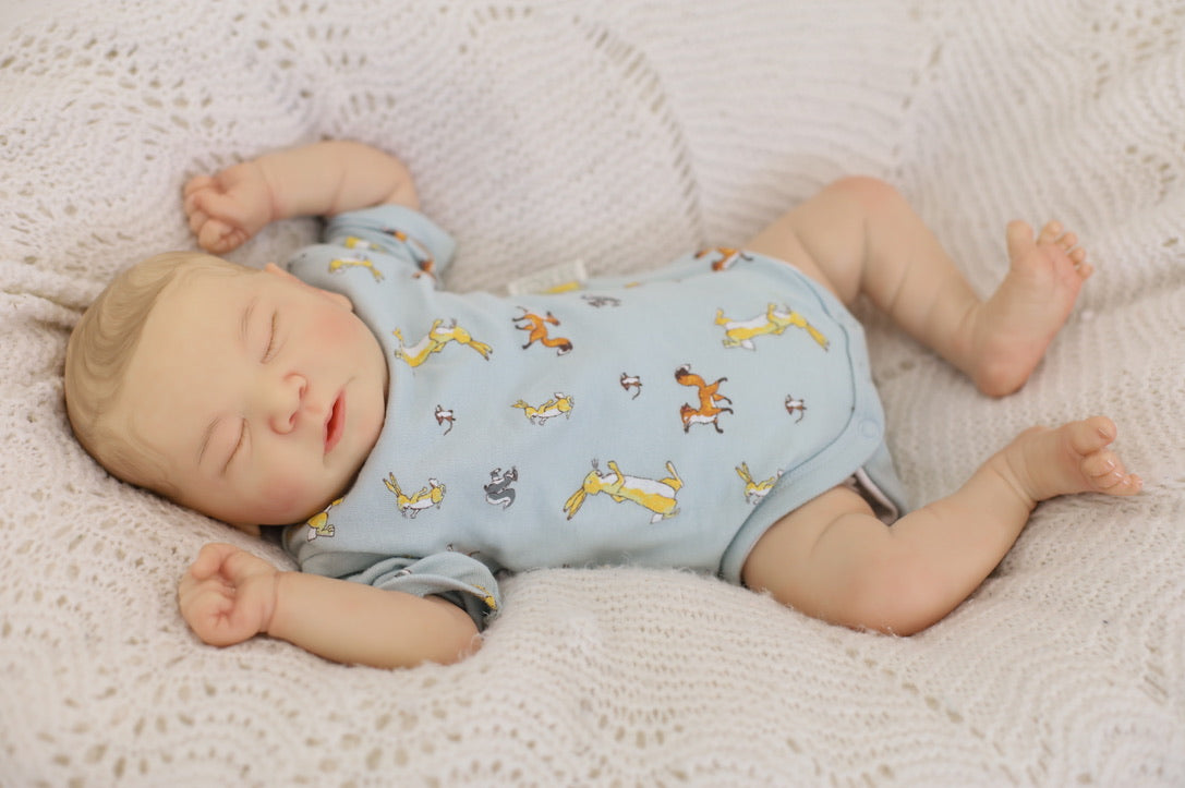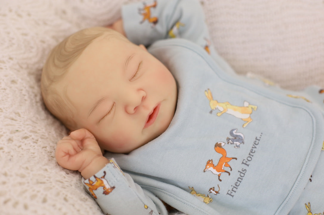 He has been hand painted at Aliyah's Playborn World by our team of talented reborn artists. Many, many layers of paint have brought this precious baby to life, making him look and feel just like a real baby.