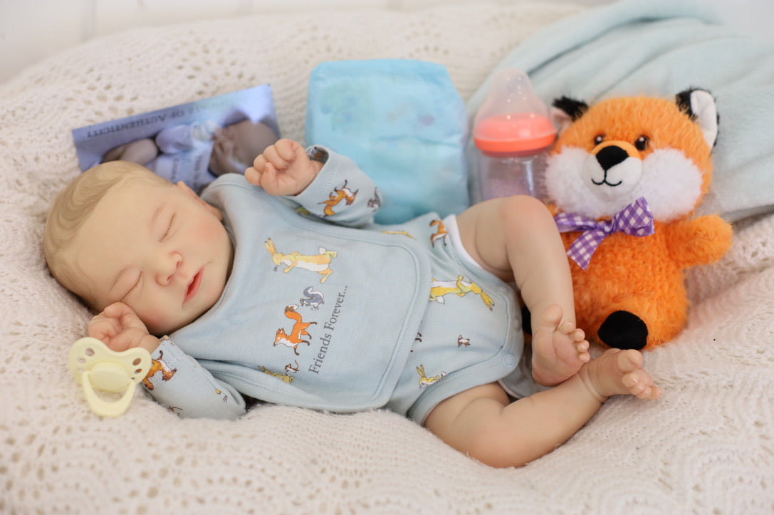 He's ready for adoption and will come with with the outfit he is wearing, a magnetic dummy/ pacifier, two nappies/diapers, toy, bottle, blanket, Certificate of Authenticity and Birth Certificate.