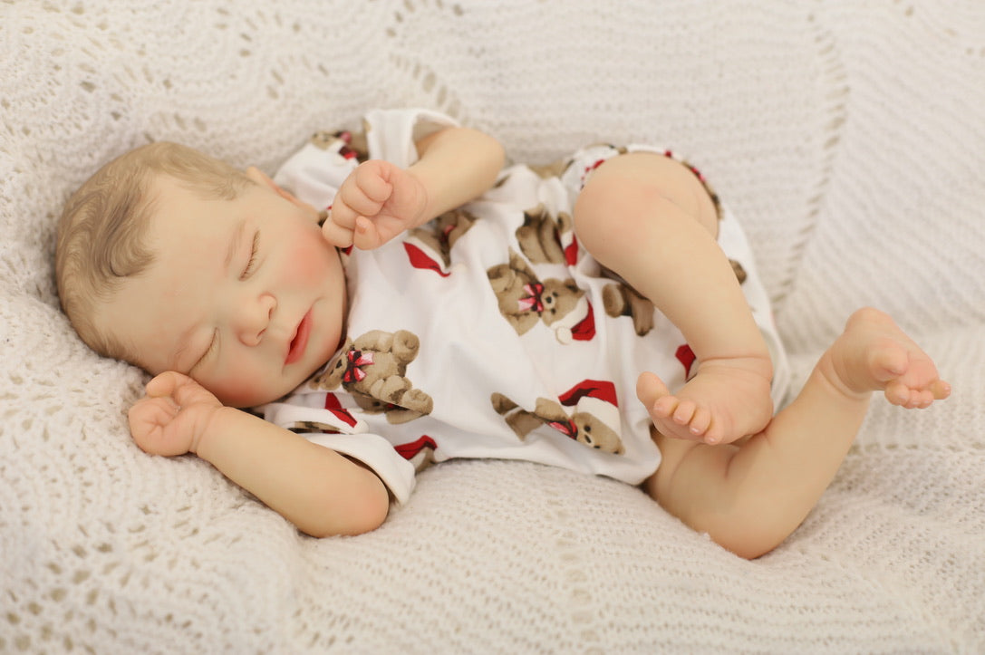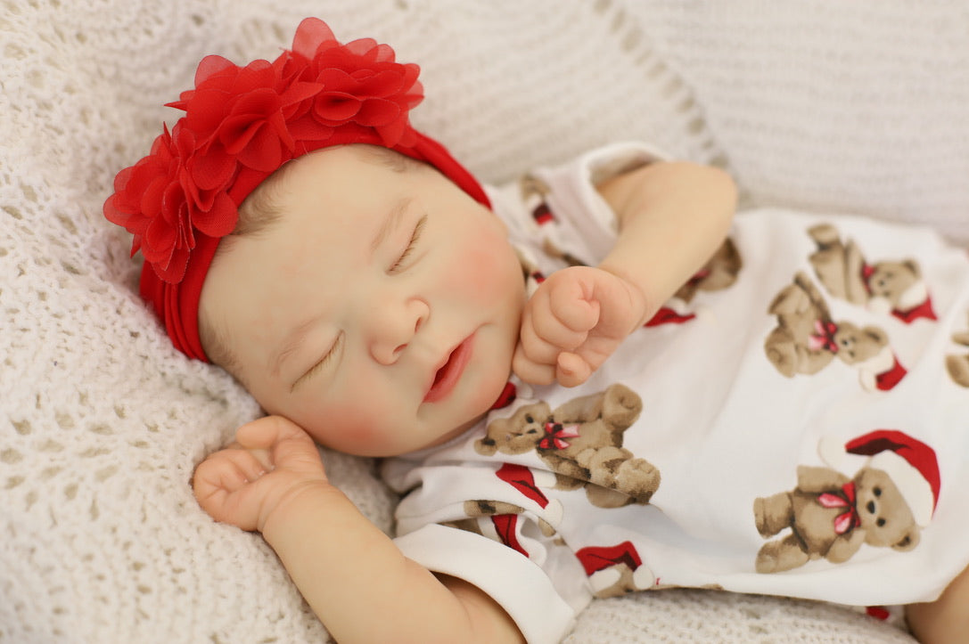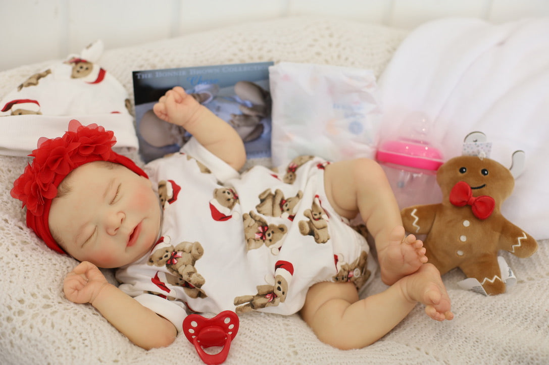 She has been hand painted at Aliyah's Playborn World by our team of talented reborn artists. Many, many layers of paint have brought this precious baby to life, making her look and feel just like a real baby.