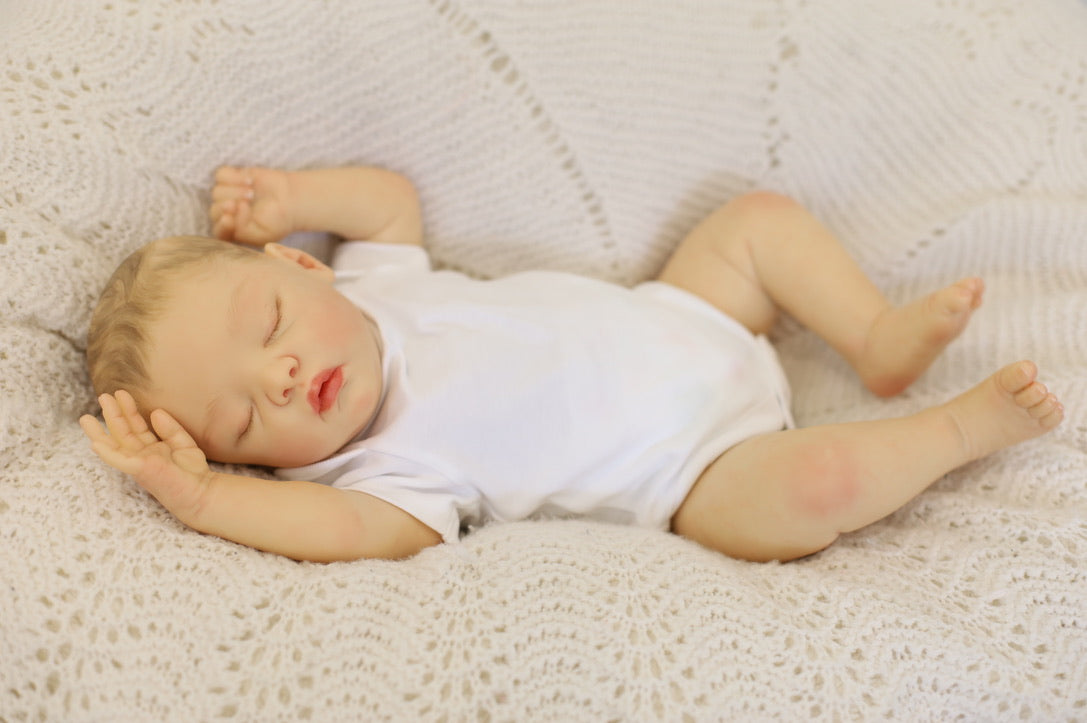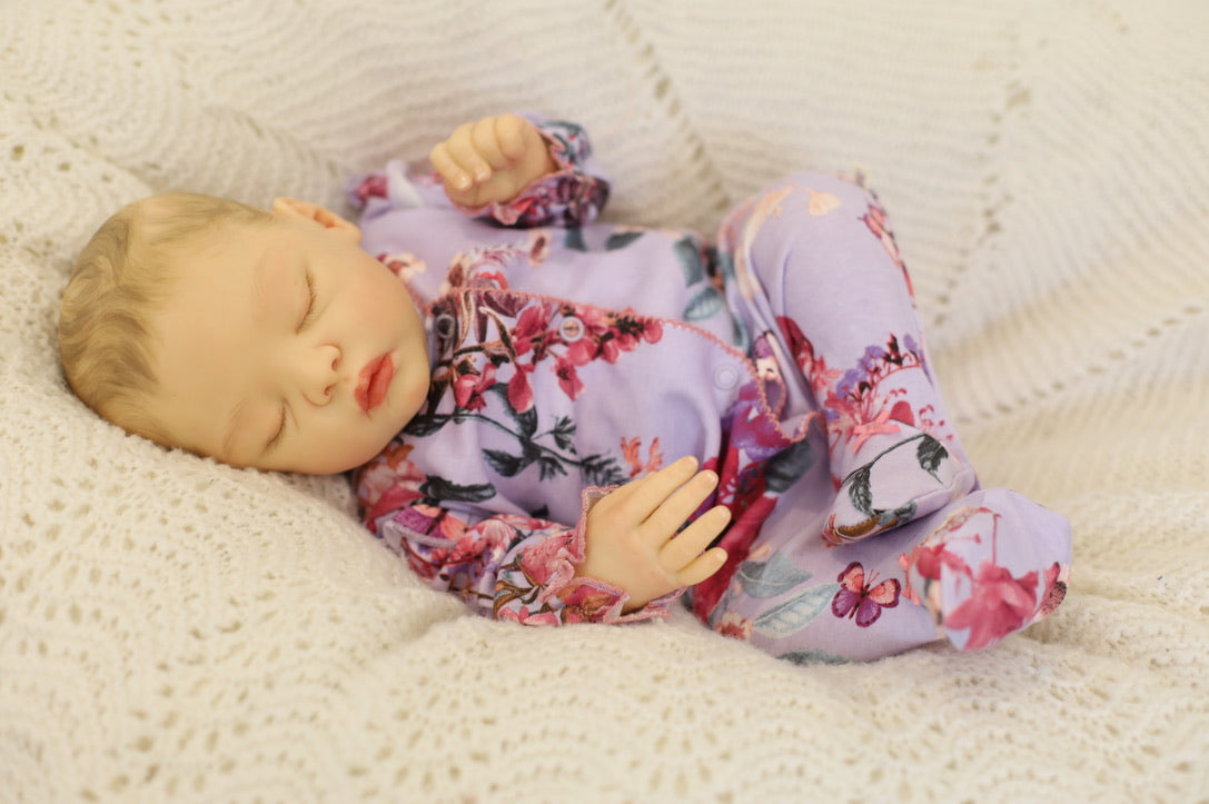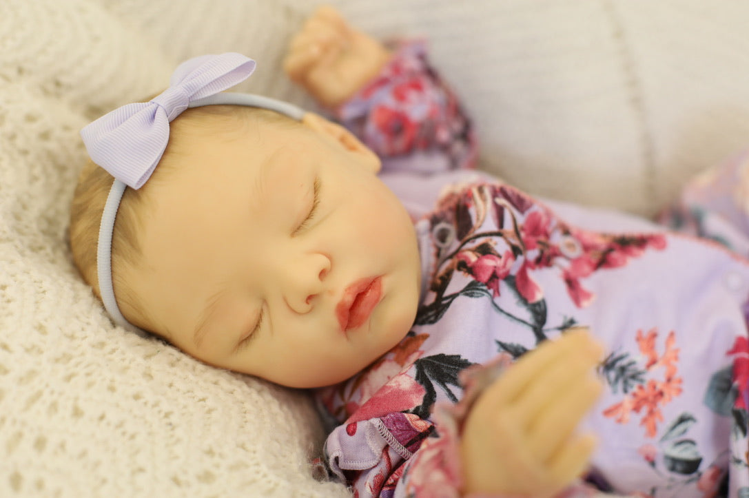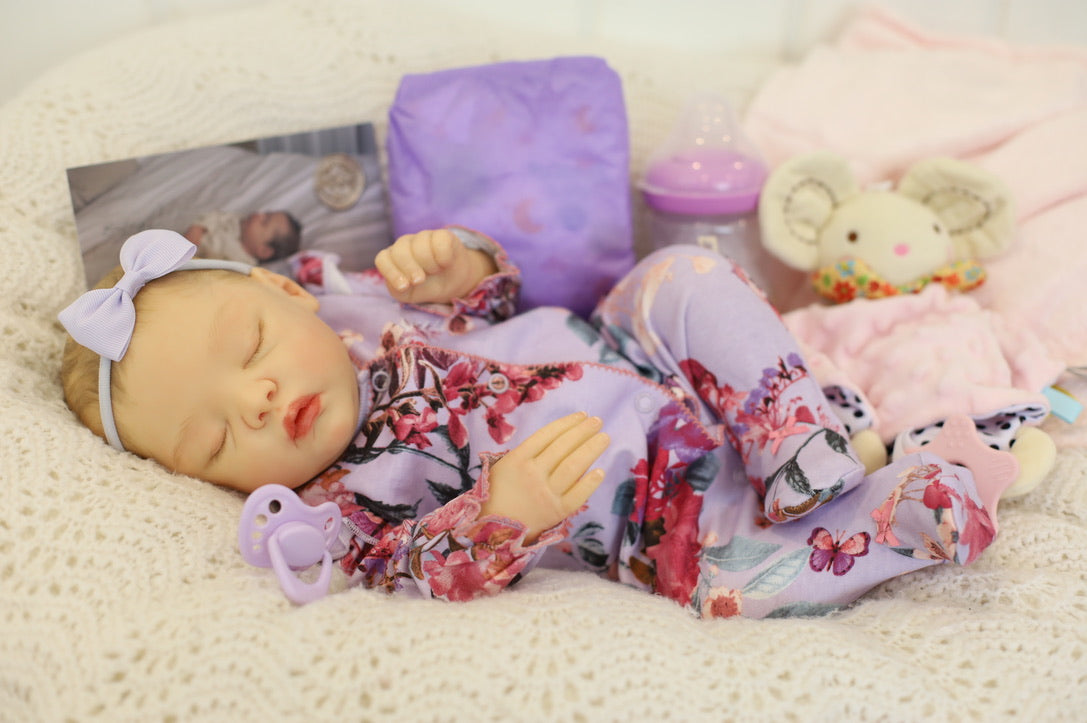 She has been hand painted at Aliyah's Playborn World by our team of talented reborn artists. Many, many layers of paint have brought this precious baby to life, making her look and feel just like a real baby.