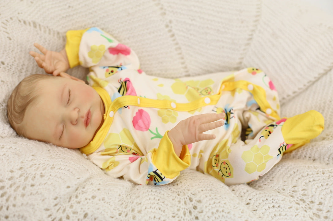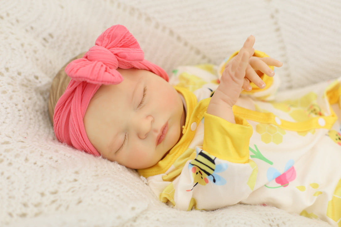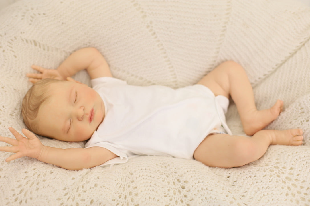 She has been hand painted at Aliyah's Playborn World by our team of talented reborn artists. Many, many layers of paint have brought this precious baby to life, making her look and feel just like a real baby.