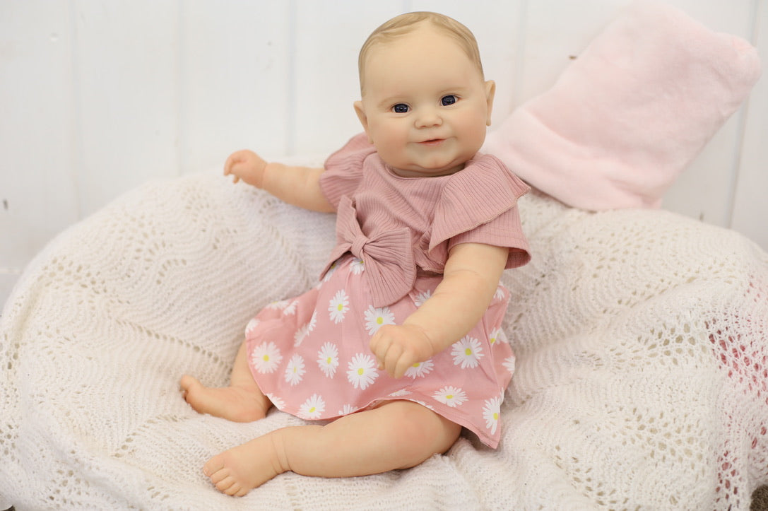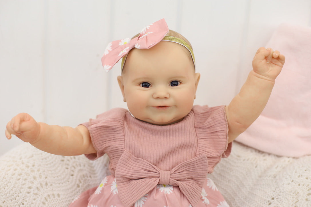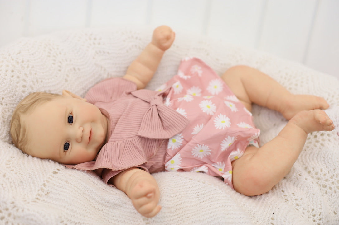 She has been hand painted at Aliyah's Playborn World by our team of talented reborn artists. Many, many layers of paint have brought this precious baby to life, making her look and feel just like a real baby.