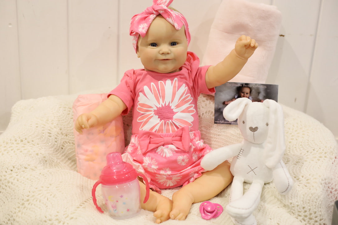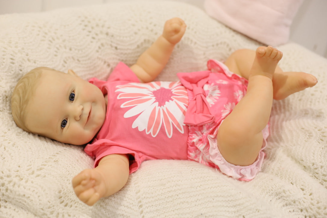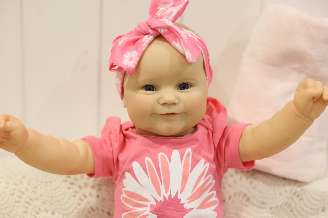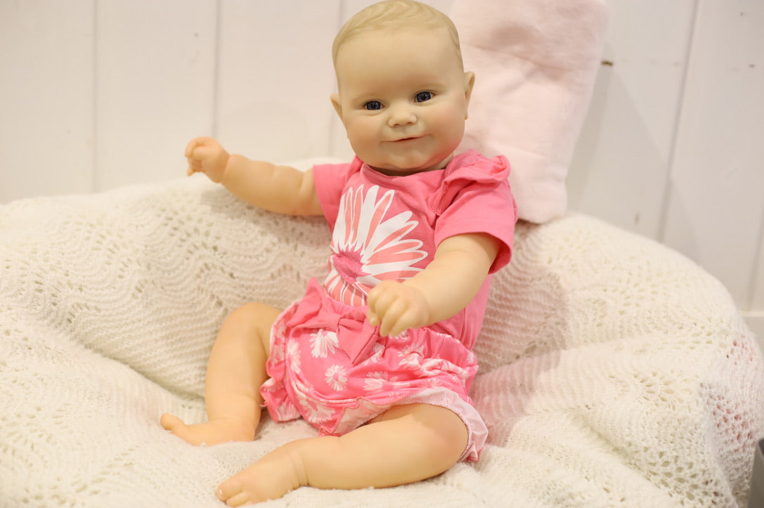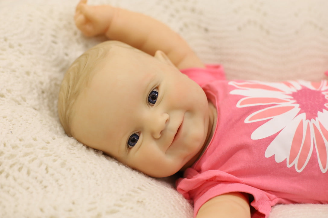 She has been hand painted at Aliyah's Playborn World by our team of talented reborn artists. Many, many layers of paint have brought this precious baby to life, making her look and feel just like a real baby.
