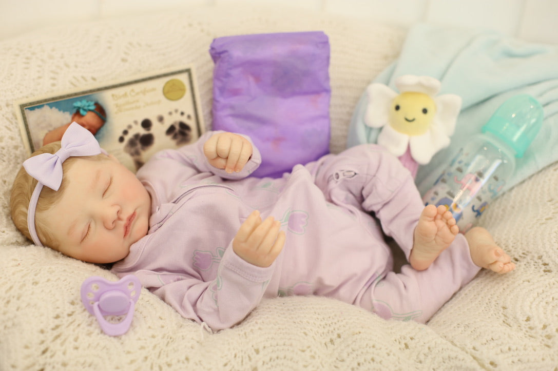 Our Miranda playborn doll is made from the Realborn Miranda Sleeping kit by Bountiful Baby.