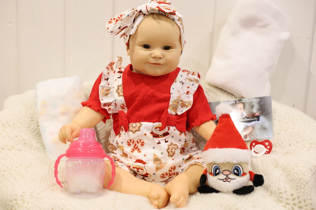 She has been hand painted at Aliyah's Playborn World by our team of talented reborn artists. Many, many layers of paint have brought this precious baby to life, making her look and feel just like a real baby.