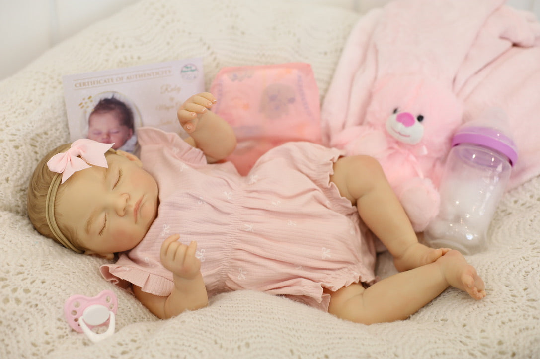 Ruby will come home with the outfit she is wearing, toy, bottle, magnetic dummy/pacifier, two nappies/diapers, blanket, Certificate of Authenticity and Birth Certificate.