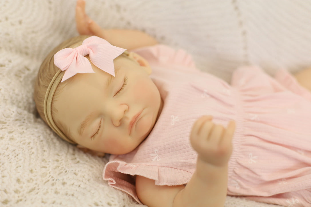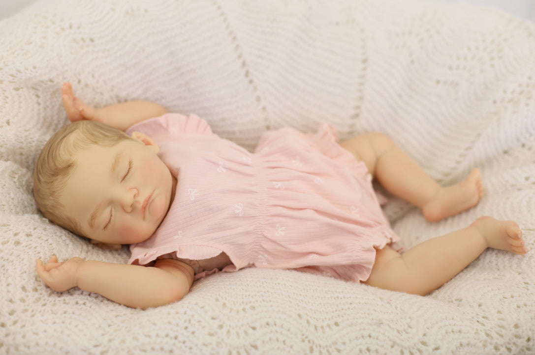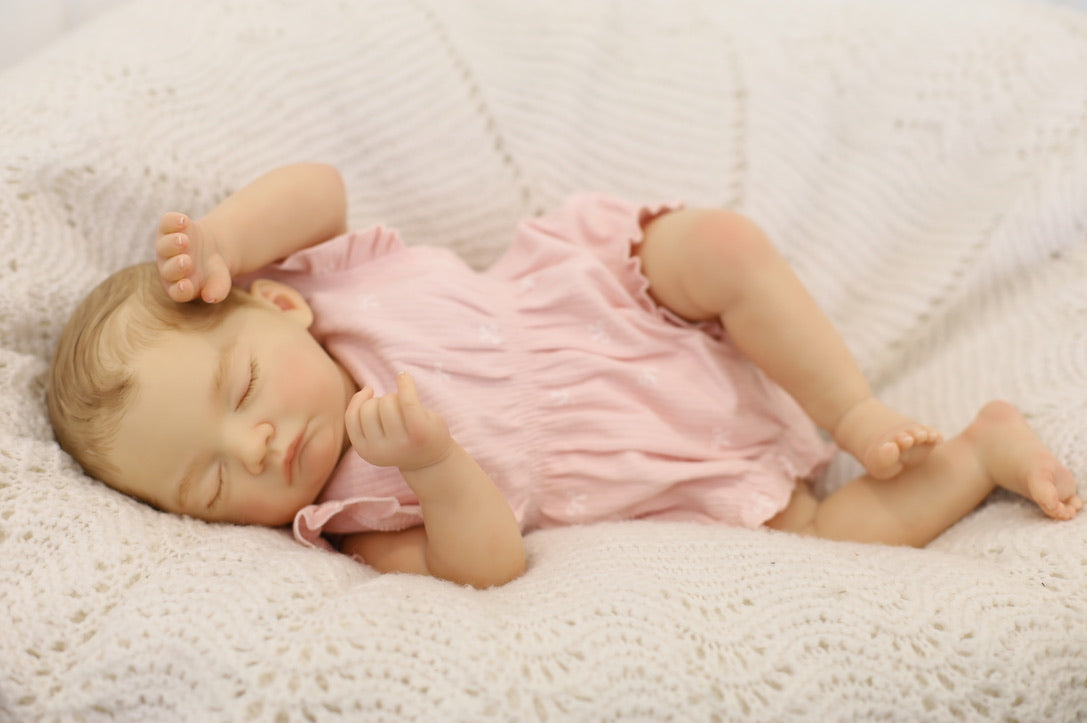 She has been hand painted at Aliyah's Playborn World by our team of talented reborn artists. Many, many layers of paint have brought this precious baby to life, making her look and feel just like a real baby.