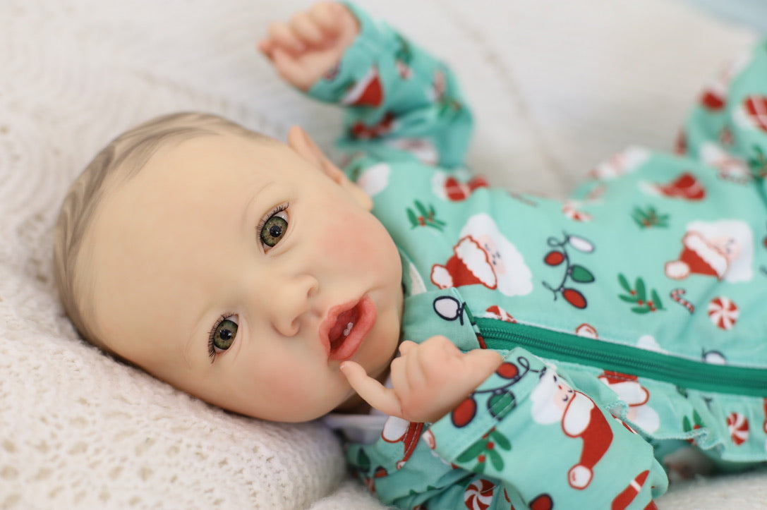 She has been hand painted at Aliyah's Playborn World by our team of talented reborn artists. Many, many layers of paint have brought this precious baby to life, making her look and feel just like a real baby.