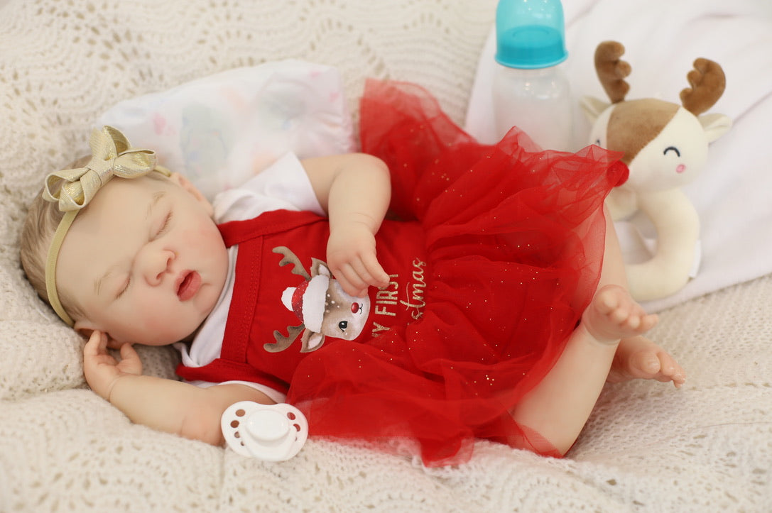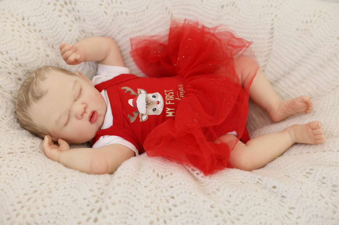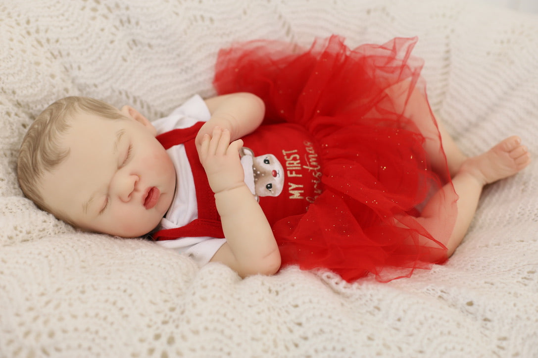 She has been hand painted at Aliyah's Playborn World by our team of talented reborn artists. Many, many layers of paint have brought this precious baby to life, making her look and feel just like a real baby.