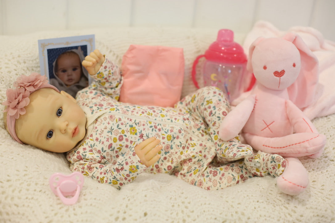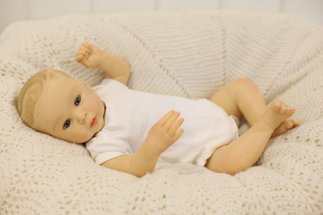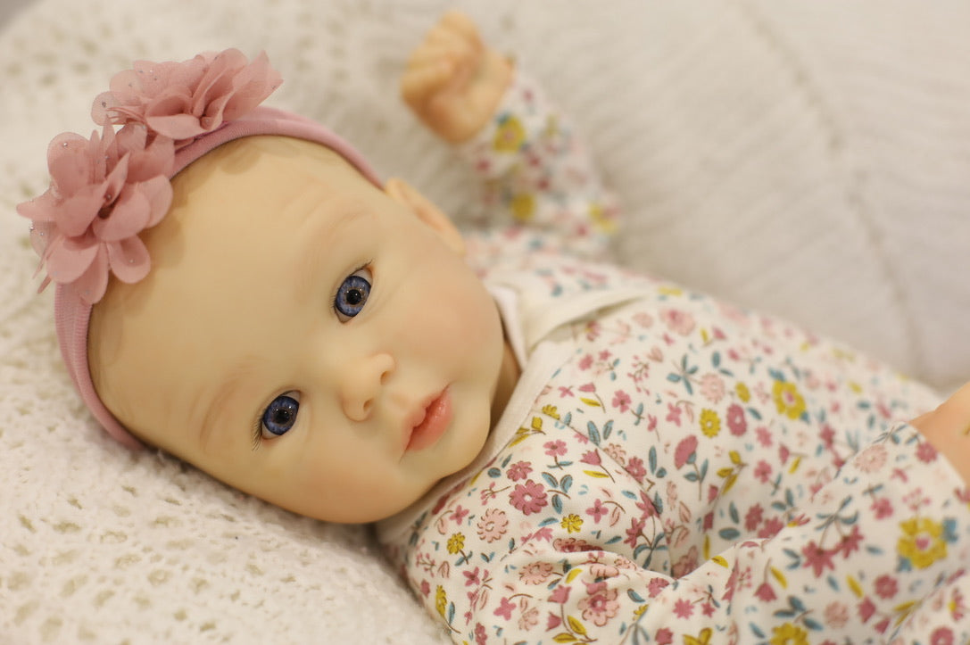 She has been hand painted at Aliyah's Playborn World by our team of talented reborn artists. Many, many layers of paint have brought this precious baby to life, making her look and feel just like a real baby.