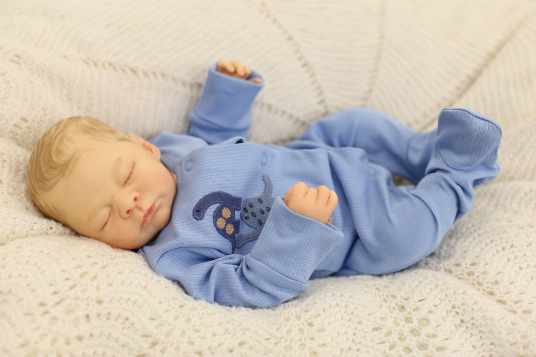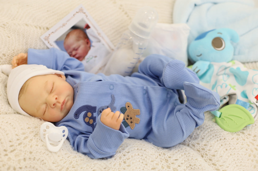 He has been hand painted at Aliyah's Playborn World by our team of talented reborn artists. Many, many layers of paint have brought this precious baby to life, making him look and feel just like a real baby.